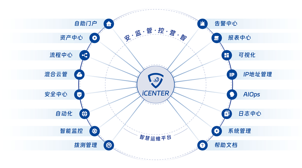 以云數據中心真實運維場景為紐帶,將 ITSM、CMDB、自動化、混合云管、NPM、可視化等眾多工具族有機串聯,構建一體化智慧能力。
