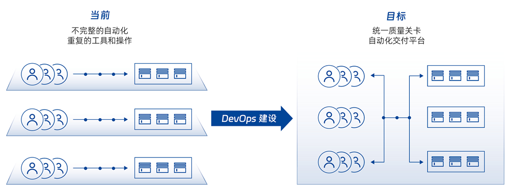 • 依賴手工或無關聯的開源工具支撐交付過程。