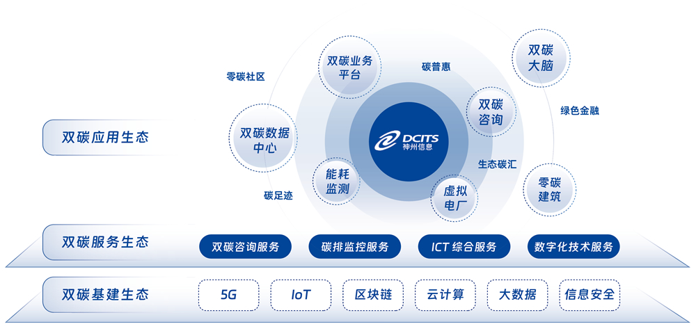 • 通過(guò)神州信息覆蓋云計(jì)算、區(qū)塊鏈、大數(shù)據(jù)、IoT 等資源匯聚能力, 構(gòu)建雙碳基建生態(tài),為雙碳應(yīng)用系統(tǒng)提供基礎(chǔ)設(shè)施建設(shè)保障。