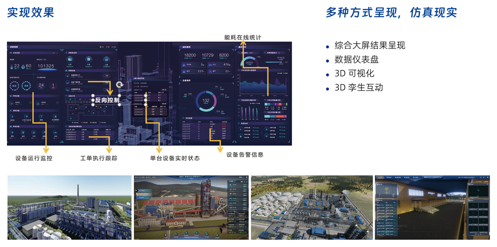 數字孿生平臺搭配展廳、大屏展示,視覺效果震感,提升整體運營管理便捷度,以及提升高層參觀效果,提高廠區講解的效率。