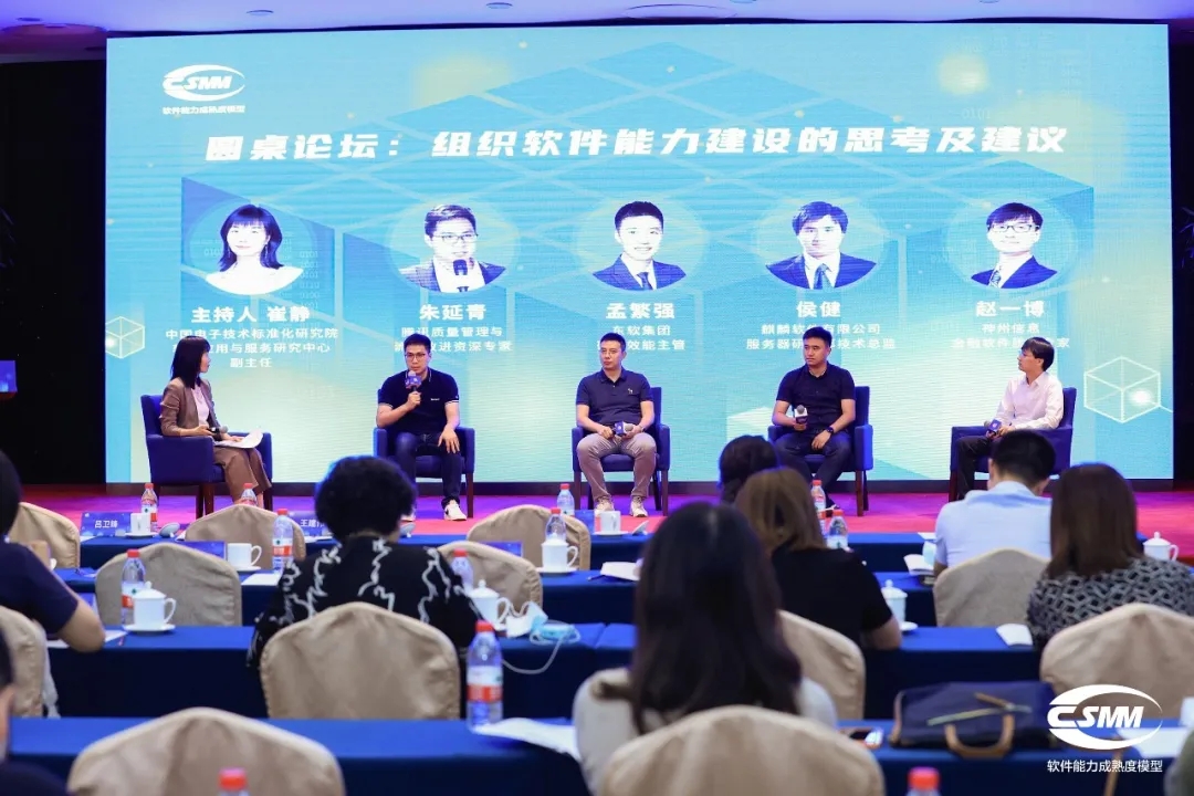 現場,神州信息金融軟件質量專家趙一博受邀參與以“組織軟件能力建設的思考與建議”為主題的圓桌論壇,圍繞軟件能力的定義、組織軟件能力的關鍵要素、對CSMM在組織中的落地以及對CSMM整體發展的建議等內容發表觀點。