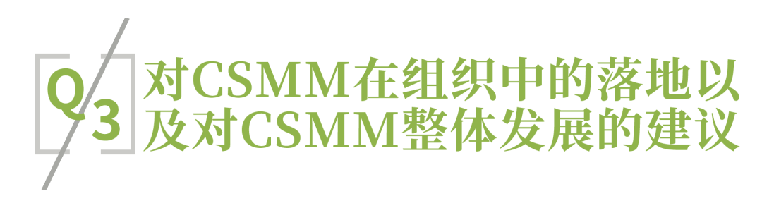 一是希望標準能夠關注不同規模、不同類型的企業,因為一個上萬IT人員、上千項目的企業,和一兩百人的IT企業引入CSMM的方式和啟動都是不一樣的,如果沒有很好的引導,可能會導致大家無從下手。第二點是,希望能夠組織更多的交流培訓,讓大家能夠互通有無,相互學習,也方便大家及時反饋問題。第三點是,CSMM的數據比一般企業要多,希望這些數據能夠盡快地發布出來,幫助企業更好、更準確地來認識自己。生態合力,讓CSMM助力更多中國軟件企業實現高質量發展。