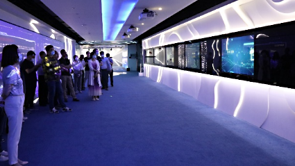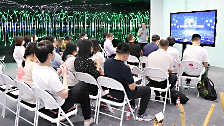 在神州信息工作人員的帶領下,與會代表首先參觀了公司的展廳,全面了解神州信息金融科技業務情況,并重點聽取了神州信息在區塊鏈及數字人民幣相關場景研發應用的創新案例方面的介紹。