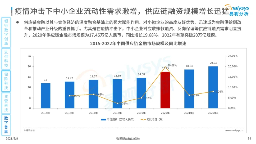 以大數據、人工智能、物聯網、區塊鏈等為代表的數字科技驅動金融產業數字化方興未艾,數字科技使得金融和科技兩個領域產生更緊密的場景聯結,使得數字科技服務可以更早、更有效地介入到金融產業增長模型中去,更早的融入到企業和個人的資產生成過程,并從根本上提升金融機構資產透視能力和資產定價能力,幫助金融機構和實體部門降低成本、提升效率、增強用戶體驗及優化業務模式。