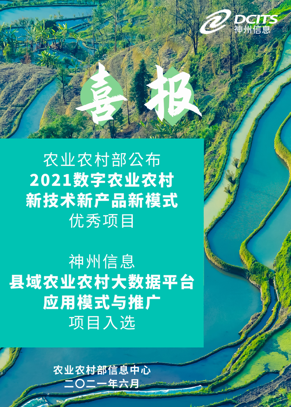 近日,農業農村部公布“2021數字農業農村新技術新產品新模式優秀項目”,神州信息申報的“縣域農業農村大數據平臺應用模式與推廣”項目成功入選。