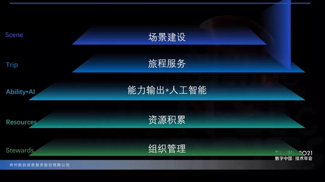 “場景建設(shè)”層是幫助拓展業(yè)務(wù)觸角、提供統(tǒng)一交互體驗(yàn)、輸出整體品牌形象的系統(tǒng)層次,一方面幫助金融企業(yè)建成“柜臺(tái)服務(wù)、移動(dòng)服務(wù)、遠(yuǎn)程服務(wù)與客戶自助服務(wù)”相結(jié)合的線上線下融合服務(wù)模式,另一方面是依托生態(tài)鏈接系統(tǒng)體系,廣泛開展跨行業(yè)合作,建立社群、農(nóng)銀、稅銀、銀企、學(xué)銀、供應(yīng)鏈、交易市場等不同領(lǐng)域的融合場景,更好地將金融服務(wù)扎根于用戶的生活生產(chǎn)過程當(dāng)中,幫助金融機(jī)構(gòu)實(shí)現(xiàn)場景與用戶的連接,滿足用戶所需、賦能產(chǎn)業(yè)發(fā)展。“旅程服務(wù)”是ModelB@nk5.0整體架構(gòu)的核心層次,由用戶旅程、產(chǎn)品服務(wù)和資金投資三部分相關(guān)系統(tǒng)組成,強(qiáng)調(diào)按照用戶在特定場景下的不同服務(wù)需求定制千人千面的流程體驗(yàn)及產(chǎn)品服務(wù),讓用戶宛如在高端旅行中一般、舒服自然地享受不同內(nèi)容的金融服務(wù)過程。“能力輸出”層是金融企業(yè)將基礎(chǔ)能力以集中方式向旅程服務(wù)進(jìn)行輸出的系統(tǒng)層次。由業(yè)務(wù)層面的四個(gè)中臺(tái)體系,內(nèi)管中臺(tái)、業(yè)務(wù)服務(wù)中臺(tái)、營銷中臺(tái)和風(fēng)控中臺(tái),以及負(fù)責(zé)基礎(chǔ)技術(shù)能力輸出的三個(gè)中臺(tái)體系,數(shù)據(jù)中臺(tái)、技術(shù)中臺(tái)以及金融超腦共同組成。金融超腦將提供整套AI能力應(yīng)用,幫助業(yè)務(wù)系統(tǒng)和技術(shù)平臺(tái)實(shí)現(xiàn)不同的智能化需求,釋放出更強(qiáng)大的潛能。“資源積累”層,強(qiáng)調(diào)數(shù)字化經(jīng)營過程中通過湖倉一體技術(shù)沉淀的數(shù)據(jù)資源,如客戶數(shù)據(jù)資源、外部數(shù)據(jù)資源、政府?dāng)?shù)據(jù)資源、機(jī)構(gòu)數(shù)據(jù)資源等。“資源積累”層沉淀的數(shù)據(jù)資源再通過數(shù)據(jù)中臺(tái)實(shí)現(xiàn)數(shù)據(jù)的實(shí)時(shí)分析與傳輸,快速地將數(shù)據(jù)價(jià)值賦能到業(yè)務(wù)處理以及經(jīng)營管理過程當(dāng)中。“組織管理”層是整體架構(gòu)面向金融企業(yè)監(jiān)管、審計(jì)和經(jīng)營管理等層面,保障金融企業(yè)平穩(wěn)運(yùn)行發(fā)展的根基。