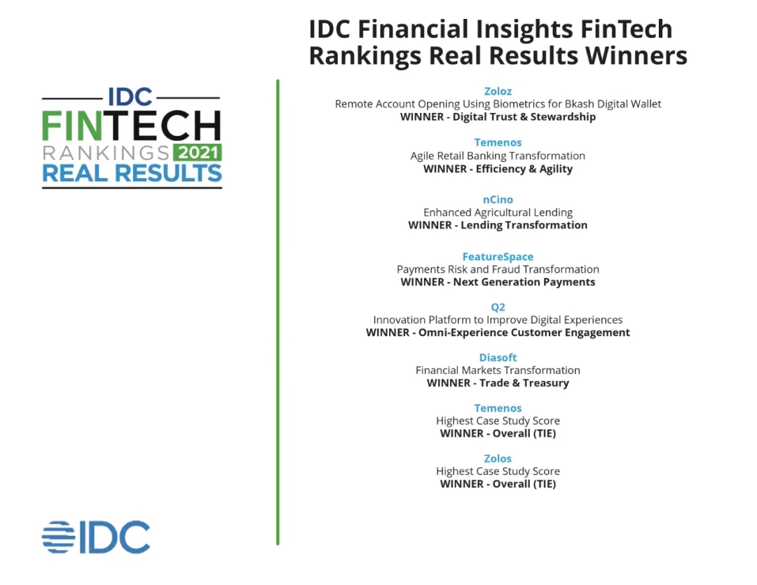 2021年度 IDC Fintech Rankings(IDC全球金融科技排行榜)及 IDC Fintech Rankings Real Results Awards (IDC全球金融科技真實價值獎) 于2021年9月13日正式揭曉。