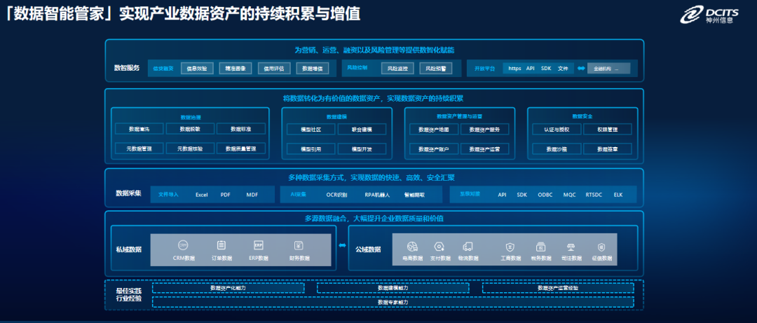 產(chǎn)融DaaS沉淀了國際領(lǐng)先的數(shù)據(jù)治理能力、數(shù)據(jù)建模能力、數(shù)據(jù)資產(chǎn)化及運營能力以及在產(chǎn)業(yè)和金融機(jī)構(gòu)的最佳實踐,實現(xiàn)服務(wù)領(lǐng)先;