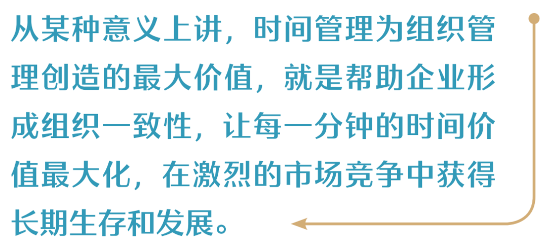 從某種意義上講,時間管理為組織管理創造的最大價值,就是幫助企業形成組織一致性,讓每一分鐘的時間價值最大化,在激烈的市場競爭中獲得長期生存和發展。
