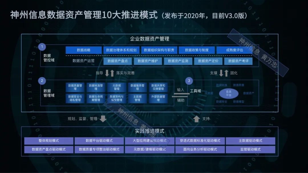首先,來看數(shù)據(jù)治理實(shí)踐方法的選擇。神州信息早在2020年發(fā)布了數(shù)據(jù)治理實(shí)踐的十大推進(jìn)模式,建議從咨詢、專題實(shí)施到工具三個(gè)層面來推動(dòng)數(shù)據(jù)治理,根據(jù)企業(yè)的人、環(huán)境、經(jīng)營狀態(tài)等實(shí)際,選擇合適的數(shù)據(jù)治理推進(jìn)模式。衍生出了自上而下的整體規(guī)劃模式,數(shù)據(jù)平臺(tái)驅(qū)動(dòng)模式,以及自下而上的面向業(yè)務(wù)分析驅(qū)動(dòng)模式、數(shù)據(jù)資產(chǎn)盤點(diǎn)模式等。我們可以靈活地選取一種或者多種組合來實(shí)現(xiàn)數(shù)據(jù)治理實(shí)踐工作。