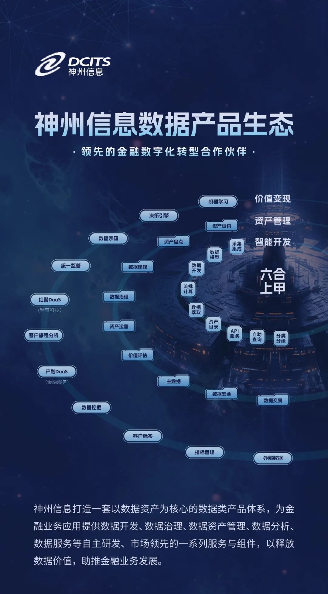 黃萬忠表示上下四方謂之“六合”,一等神兵謂之“上甲”,神州信息希望給市場(chǎng)一個(gè)關(guān)于數(shù)據(jù)資產(chǎn)價(jià)值發(fā)揮的實(shí)用工具。同時(shí)還重點(diǎn)介紹了利用六合上甲開發(fā)的幾個(gè)數(shù)據(jù)資產(chǎn)價(jià)值發(fā)揮的場(chǎng)景。