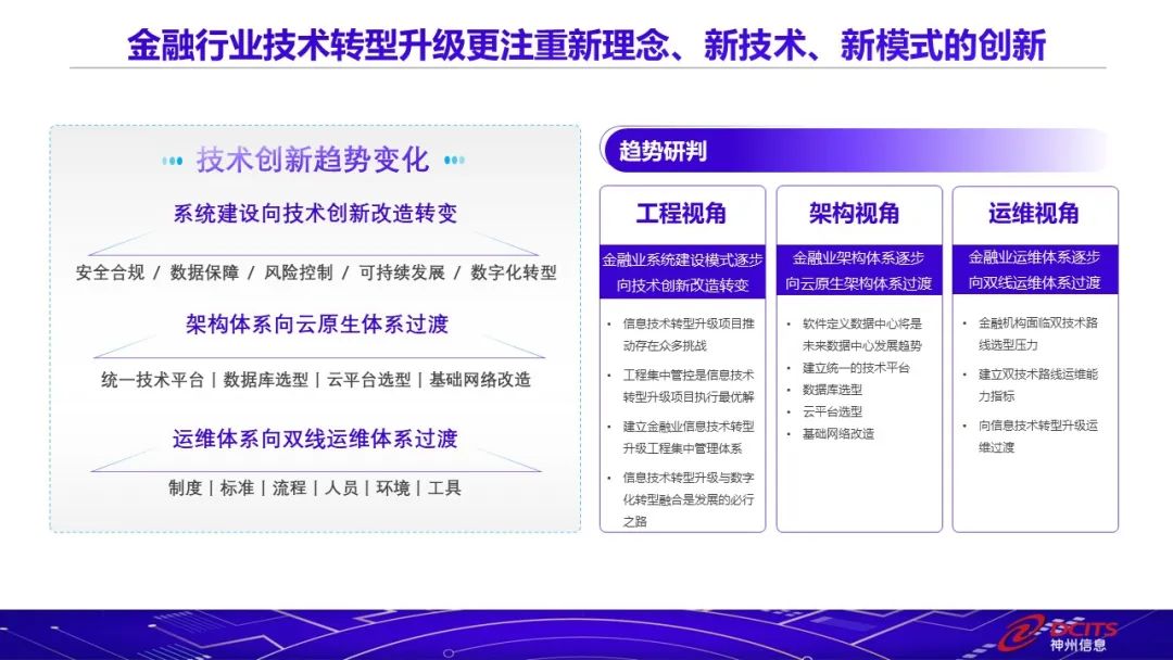 隨著新形勢下金融數字化轉型的不斷深入,金融行業也向著更安全、更可靠的高質量發展邁進。本次發布的白皮書首次從背景、趨勢、技術、關鍵切入點等多個方面對信息技術創新進行了體系化的理論總結,為金融機構信息技術創新提供了一份指引手冊。同時,幫助行業充分認識與發揮生態的作用,最大范圍的向外界展示了目前國內信息技術應用創新的實踐案例。白皮書結合當下數字化轉型趨勢,提出了信息技術應用創新的趨勢,為金融行業科技發展、信息技術轉型升級提供方向指引。在金融行業安全合規要求日益增強的趨勢下,神州信息基于自主研發的分布式技術平臺構建核心業務系統,可實現從硬件到云環境等全種類國產化深度適配,擁有自主知識產權,實現真正的安全可靠。