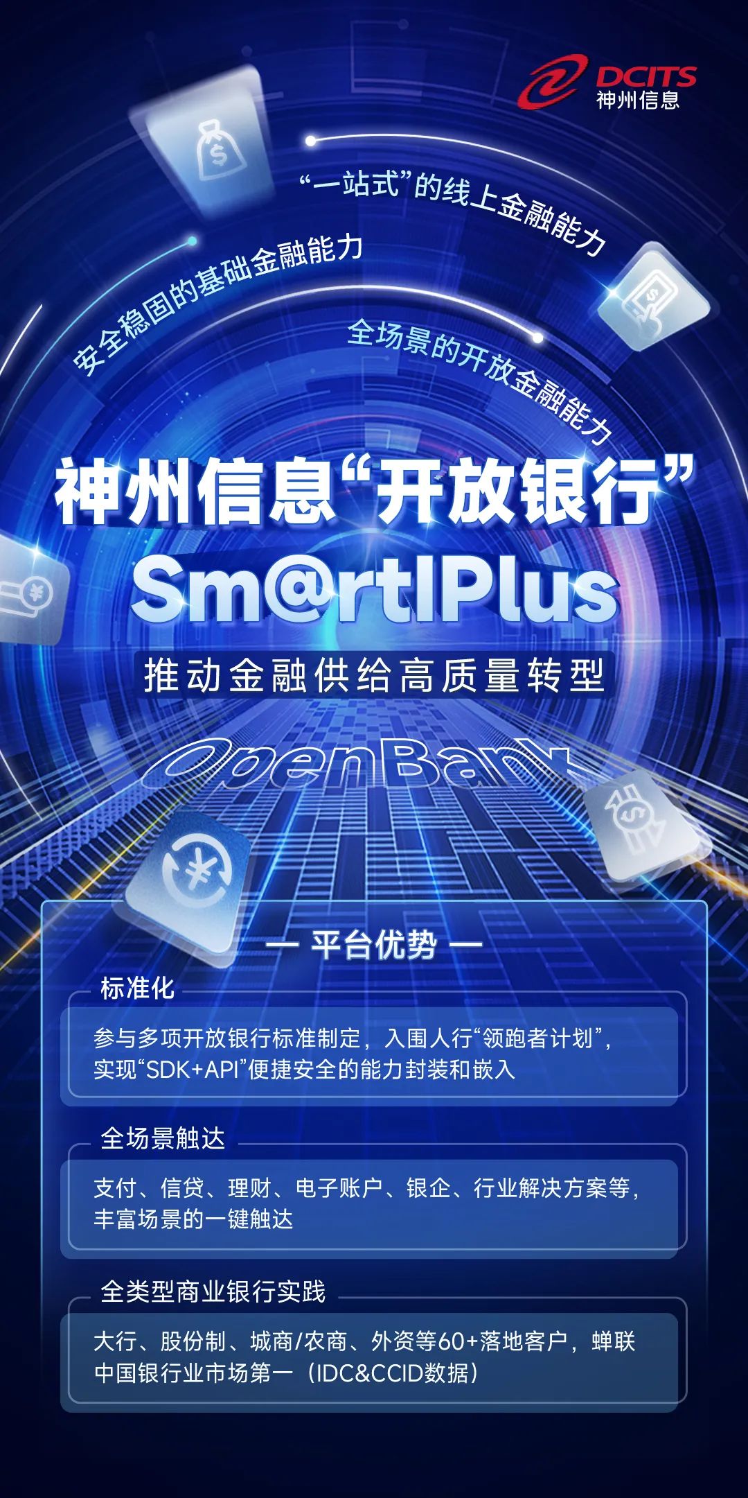 神州信息作為國(guó)內(nèi)最早推動(dòng)“開放銀行”理念落地的公司,通過研發(fā)互聯(lián)網(wǎng)開放平臺(tái)Sm@rtIPlus等系列產(chǎn)品,圍繞“開放、共享、共建”的Open Bank理念形成了完善的產(chǎn)品和服務(wù)能力。神州信息從最早參與國(guó)有大行、全國(guó)性股份制銀行項(xiàng)目建設(shè),再到如今結(jié)合區(qū)域銀行的現(xiàn)實(shí)需求,從“服務(wù)能力、集成開發(fā)能力、安全能力、治理能力、運(yùn)營(yíng)能力”等多方面,幫助區(qū)域銀行打造具有差異化特色的Open Bank能力體系,更好的結(jié)合區(qū)域特點(diǎn),實(shí)現(xiàn)金融供給能力和產(chǎn)品的創(chuàng)新改善。