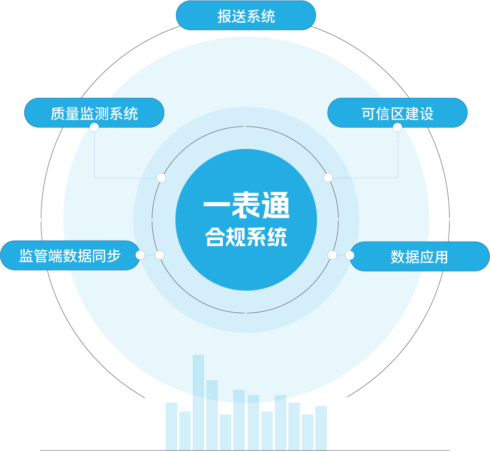 神州信息一表通監管合規系統由報送系統、質量監測系統、可信區建設、監管端數據同步、數據應用幾部分組成。