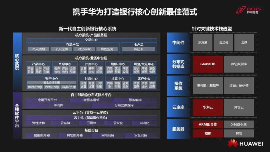 神州信息攜手華為打造的新一代自主創(chuàng)新銀行核心系統(tǒng)及解決方案在本次大會正式亮相。在產(chǎn)品服務(wù)層與業(yè)務(wù)中臺層進(jìn)行全面自主創(chuàng)新,其全棧軟件平臺包括分布式數(shù)據(jù)庫、云平臺(一云多芯)、鯤鵬服務(wù)器等,解決方案及落地案例覆蓋IT基礎(chǔ)架構(gòu)全生命周期的規(guī)劃咨詢、架構(gòu)設(shè)計、集成交付、集成管控、智能運(yùn)維、系統(tǒng)遷移、災(zāi)備建設(shè)等領(lǐng)域。