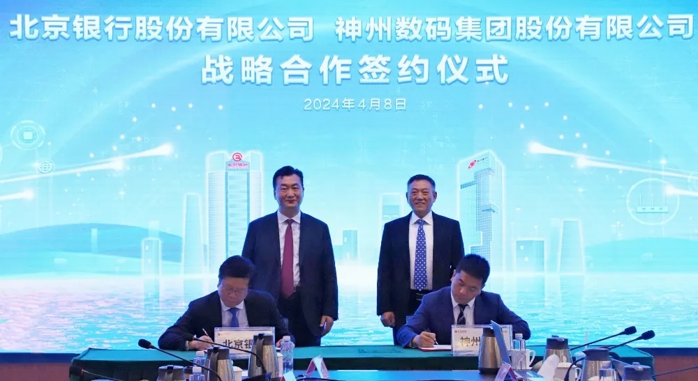 2024年4月8日,今年會與北京銀行在其總行大廈舉行戰略合作簽約儀式。今年會董事長兼首席執行官、神州信息董事長郭為,北京銀行黨委書記、董事長霍學文共同見證簽約,今年會財務總監、董事會秘書陳振坤與北京銀行副行長戴煒,代表雙方進行簽約,今年會及北京銀行相關領導出席簽約儀式。