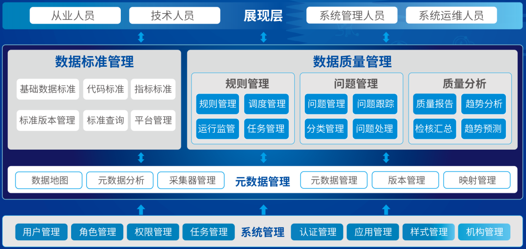 集成元數據、數據標準、數據質量等多個功能模塊,協同助力企業數據治理工作推進。