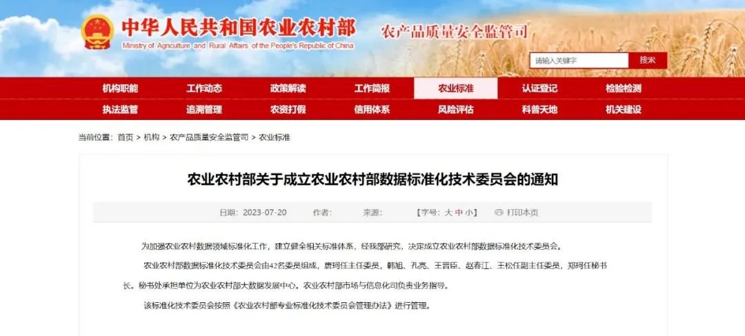 為了加強農業農村領域數據標準化工作,建立健全相關標準體系,農業農村部數據標準化技術委員會(以下簡稱農業數據標委會)于近日正式成立,神州信息副總裁王宇飛入選農業數據標委會委員。