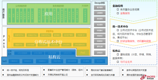 二是實(shí)現(xiàn)技術(shù)能力的內(nèi)聚。在“無(wú)核化”理念下,進(jìn)一步實(shí)現(xiàn)核心能力的剝離和重塑,最終將通用性技術(shù)能力內(nèi)聚為全行級(jí)的統(tǒng)一技術(shù)平臺(tái),實(shí)現(xiàn)通用能力的復(fù)用,有效支撐上層業(yè)務(wù)創(chuàng)新和發(fā)揮底層云算力的釋放。
