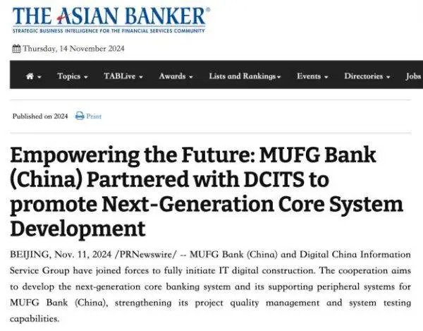 神州信息成功與三菱日聯銀行(中國)就新一代核心系統達成戰略合作。繼匯豐中國后,再次收獲國際金融數字化轉型案例,全面助力出海。