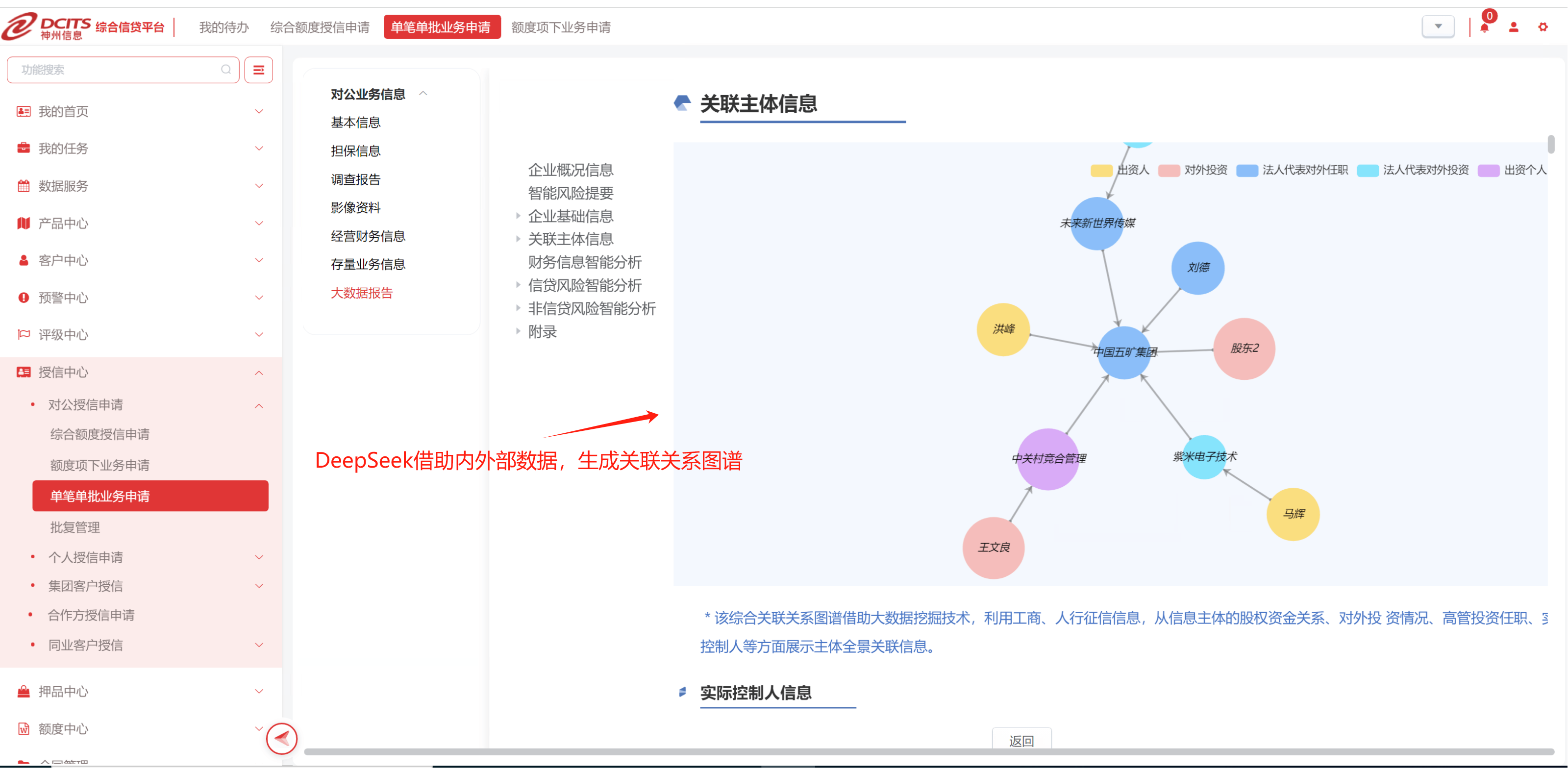 神州信息通過接入國產開源大模型DeepSeek,成功研發“智能綜合信貸系統”。該系統依托DeepSeek大模型的強大能力,實現了多模態解析、動態建模與實時預警等能力提升,從而對信貸業務全流程進行精準決策與效率躍升。在具體應用中,系統重點聚焦于“非標數據轉化、供應鏈交易驗證、軟信息量化、行業風險監控、客戶畫像精準營銷”五大場景,并在這些領域實現了突破性進展。